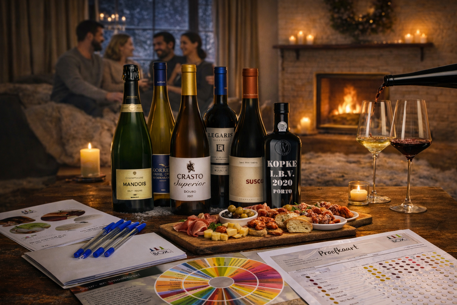 Wijnproeverij thuis in de winter (cozy & compleet)
